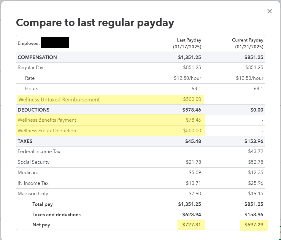 We use a pretax deduction and an untaxed reimbursement to lower the amount of taxes that they employee pays. We use that tax savings created by the program to pay for the cost of the wellness benefits and insurance benefits. There is also some left over tax savings that will increase the employees net pay.